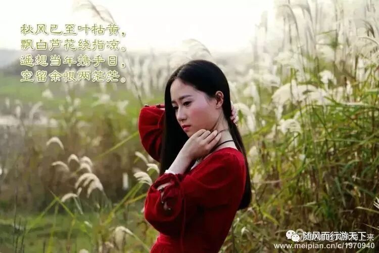 碧云湖北岸周岗大桥附近有片芦苇荡,有山水和风车为背景,颇有诗经《关雎》所描写的意境。感谢美女友情出镜,感谢文友赋诗!23 芦苇荡秋思