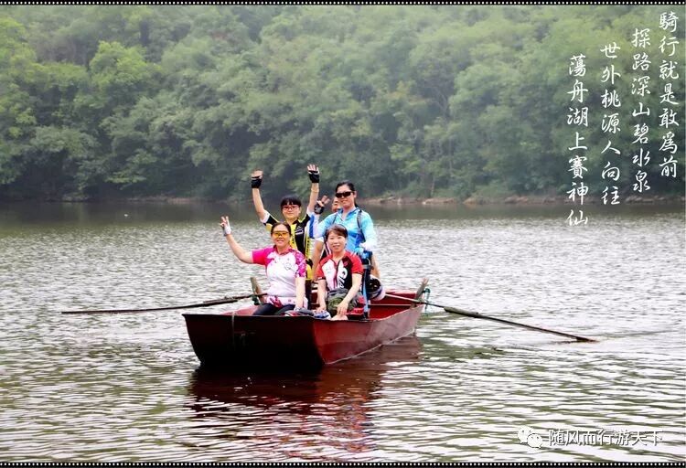 骑行就是敢为前,探路深山碧水泉。世外桃源人向往,荡舟湖上赛神仙。