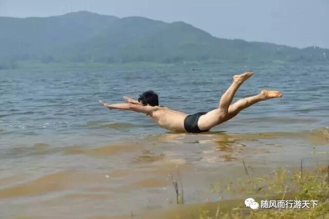 "椒陵海"其实就是碧云湖北岸临近周岗大桥的一片沙滩,为全椒网络名人黑猫警长发现并命名。称之为"海",主要是离绿草萋萋的岸边50米不足一人深且都是沙而少泥,脚踩便水色变黄,颇有海滩之韵;其次是高温下湖水清澈泛蓝,还有对面青山、风塔,确是炎炎夏日里全椒境内避暑、游泳、赏景的一片清凉世界。感谢2016年骑游椒陵海偶遇蒋思武会长抓拍的精彩"水上漂"镜头。