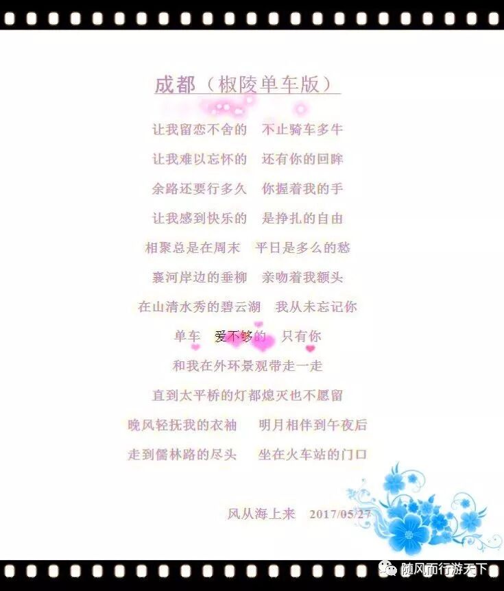 碧云湖上白云飘,情侣湾中柳树娆。莫道身边无美景,骑行勇士乐逍遥!
