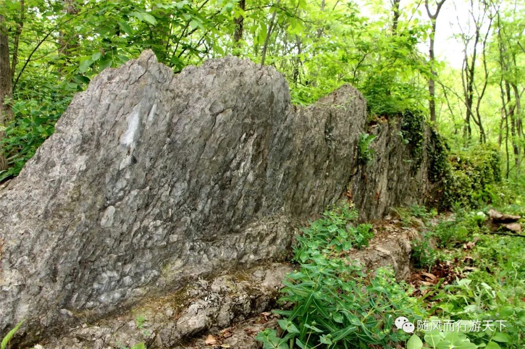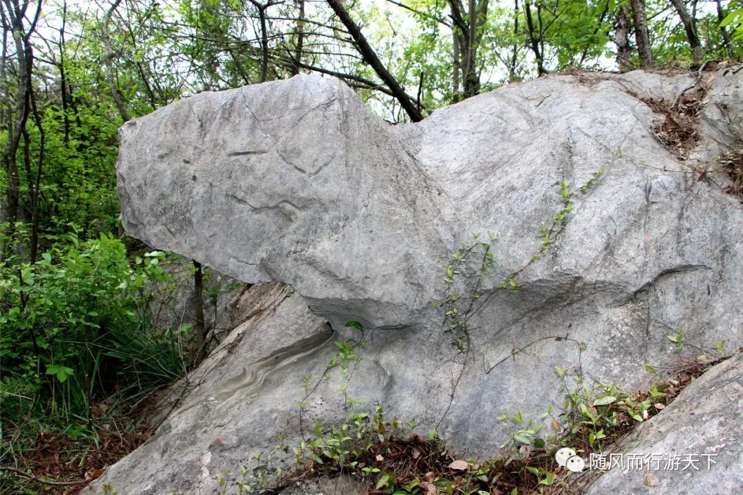 神山大峡谷的神龟石为椒陵骑行人2014年首次发现,图中骑友张老虽年逾七旬但丝毫不输年轻人,令人钦佩,实为椒陵骑友的楷模! 2017年4月22日再访神山流苏花,发现神山二库流苏树边上的一座"沙发"远看像木,近观为石,纹路清晰,恰似"卧虎",遂取名"卧虎石","美女与野兽"令人啧啧称奇!
