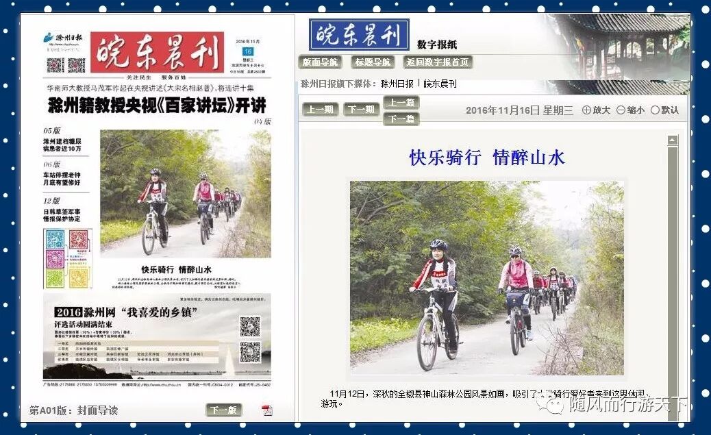 车行山水间,人在画中游!特别是雨后骑行在路面整洁、车辆稀少、空气新鲜、风景秀美的山路、村村通公路上的感觉真是爽歪歪!(拍摄:骑友我行我摄) 全椒的新农村建设越来越好,黄栗树新村、河东新村、孙家新村、周洼新村等国家级、省级乡村旅游示范村风景怡人,让人举手点赞,颇有乐不思蜀之感。 2017年3月18日,骑游周洼新村赏油菜花时偶遇全椒县委常委、副县长陈飏,她鼓励我们在引领健身时尚的同时要多多宣传美好家乡,并热情与姐妹们合影留念。(拍摄:黑猫警长)