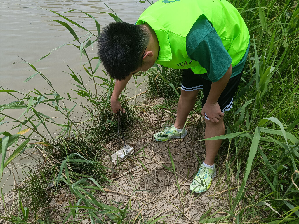 图为在相关人员的带领下捡湿地的垃圾。通讯员 邵迪 供图
