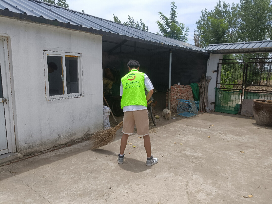图为志愿者帮助空巢老人打扫院子。通讯员 邵迪 供图