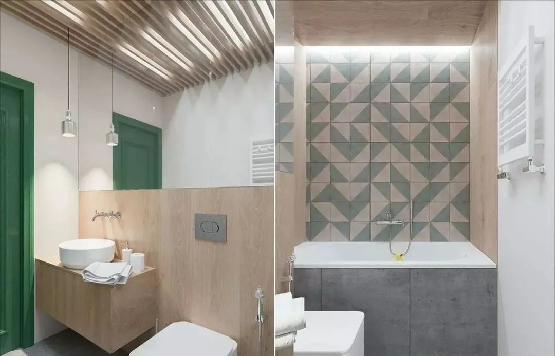 下图案例墙面主色调是雪花雕像白,辅助以小花砖增色,相比于整片大面积使用一种瓷砖铺贴的方法,这样搭配让空间更加生动。